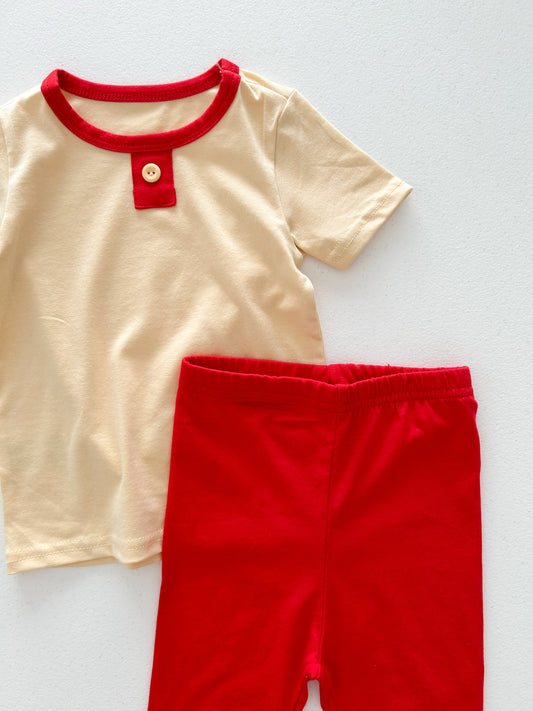 Toddler SS25 Contrast Short Sleeve Top and Pants Set (1-7y) - Butter Yellow