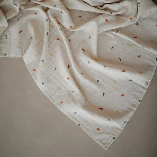 Mushie Muslin Swaddle Blanket Organic Cotton (Dinosaur)