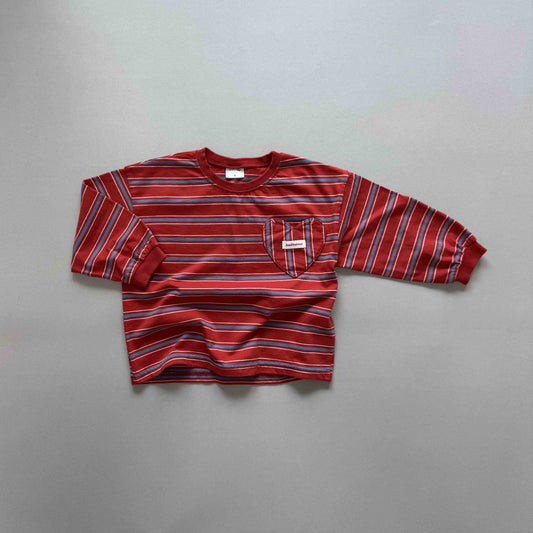 Toddler F25 Heart Pocket Stripe Long Sleeve Top (3-7y) - Red