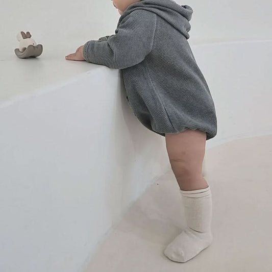 Baby Nunu Textured Kangaroo Pocket Hoodie Romper (3-18m) - 3 Colors
