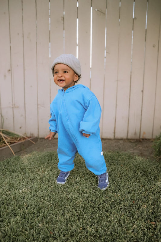 [At Noon Original Design] Baby Pigment Dyed Zip-Up Hoodie Jumpsuit (3m-3y)-Blue