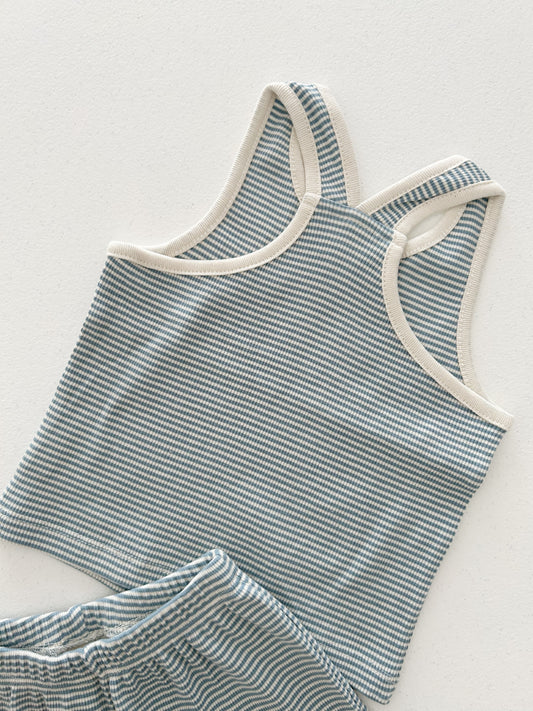 Baby/Toddler SS25 Ribbed Stripe Sleeveless Top and Shorts Set (6m-4y) - 2 Colors