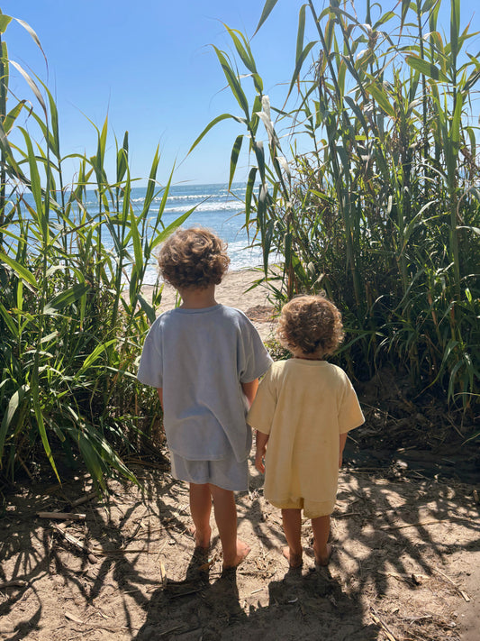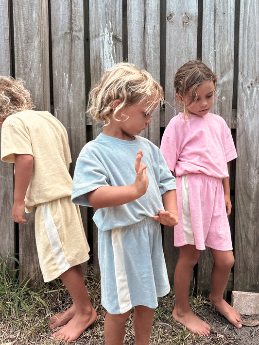 [At Noon Original Design] Kids Terry Cloth Short Sleeve Top and Shorts Set (6m-7y) - Blue