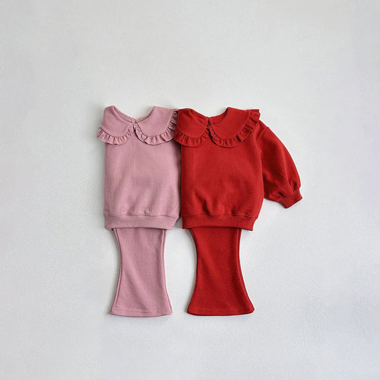 Toddler F25 Ruffled Collar Long Sleeve Top and Flare Pants Set (1-6y) - 2 Colors