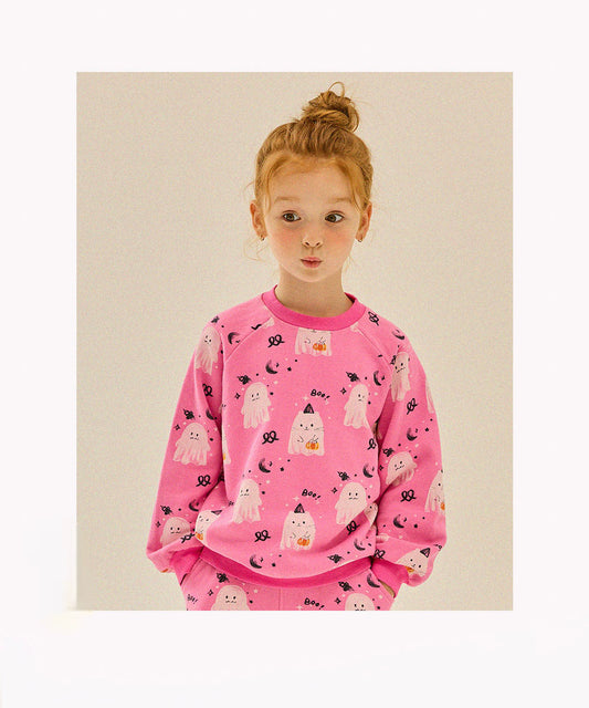 Kids F25 Halloween Long Sleeve Sweatshirt and Jogger Pants Set (3-9y) - Pink