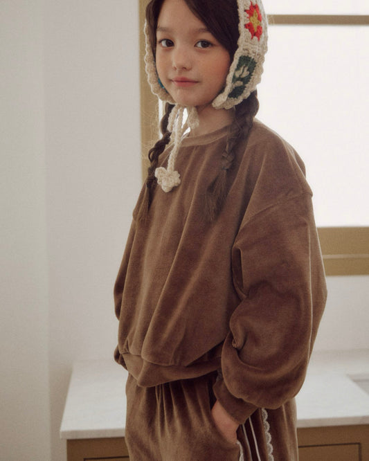 Kids F25 Velour Long Sleeve Sweatshirt and Side Lace Tape Pull-on Pants Set (3-7y) - Brown
