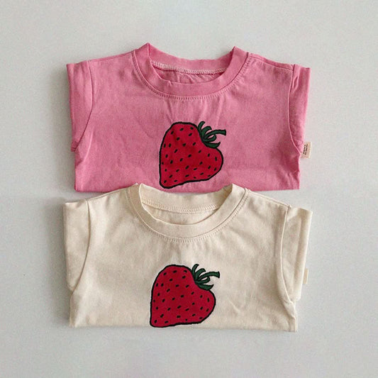 Baby/Toddler Aosta S25 Big Strawberry Print Long Sleeve Basic Top (3m-5y)- 2 Colors