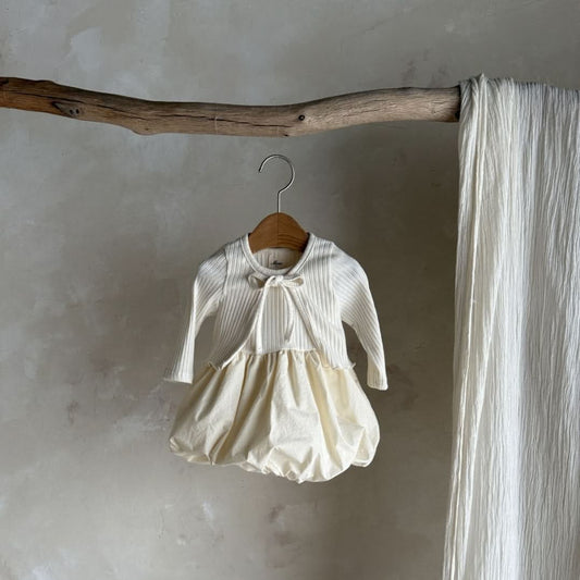 Baby S25 Rib Knit Cardigan and Sleeveless Balloon Dress (3-24m)- Cream