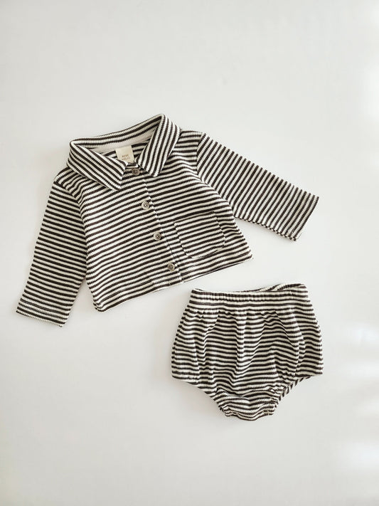 Baby BH Stripe Knit Shirt and Bloomer Shorts Set (3-18m)- 2 Colors
