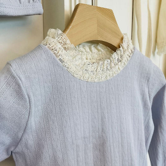 Baby Lace Trim Pointelle Romper and Bonnet Set (3-24m) - Blue
