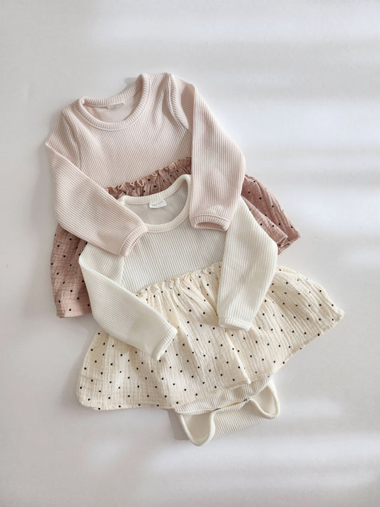 Baby Long Sleeve Polka Dot Tutu Romper (Set (6-18m) - Ivory