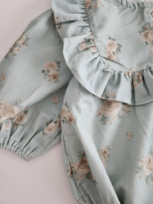Baby Milk Ruffle Yoke Rose Bubble Romper (3-6m) - Blue