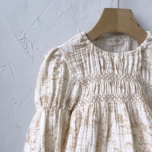 Baby Smocked Bodice Bubble Romper (3-18m) - Beige Botanic