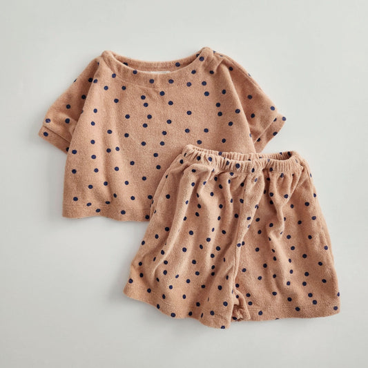Toddler Dot Print Terry Cotton Crop Top and Shorts Set (1-5y) - 2 Colors
