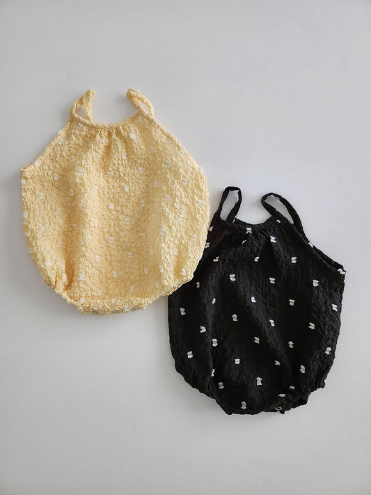 Baby Sleeveless Swiss Dot Bubble Romper (0-24m) - Black