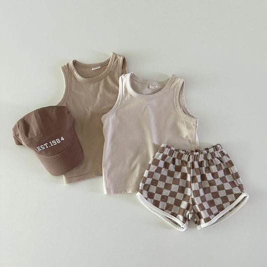 Toddler Anggo Basic Sleeveless Rash Top and Shorts Set - 2 Colors