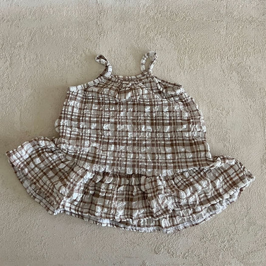 Girl's Basic Bikini | Tan Checkered (0-5y)