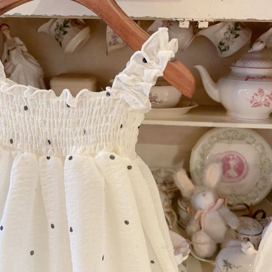 Toddler Marron Smocked Sleeveless Dress (3m-5y)- Polka Dot