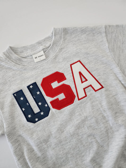 [At Noon Exclusive] Baby Original USA Embroidery T-Shirt Romper (0-18m) - Light Heather Gray