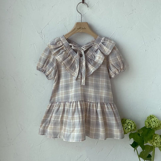 Toddler Milk Ruffle V-Neck Tie Back Dress (3m-5y)- Plaid