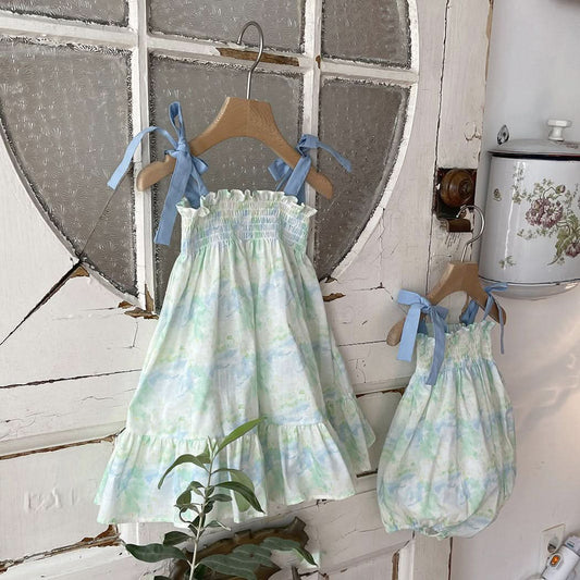 Toddler Milk Tie-Shoulder Dress (3-12m)- Green