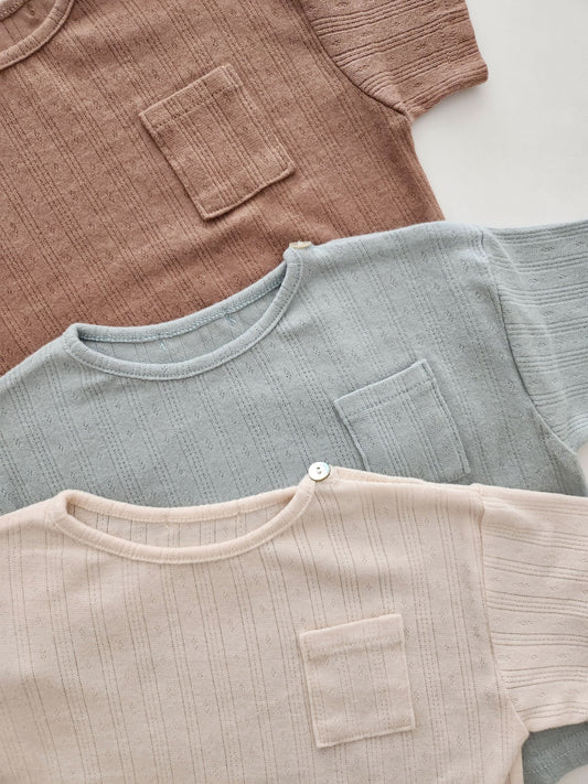 Baby Toddler Short Sleeve Pointelle Pocket Top (3-36m) - 3 Colors