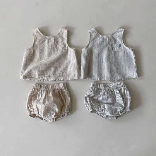 Baby BH Stripe Seersucker Sleeveless Top and Bloomer Shorts Set (3-18m) - 2 Colors