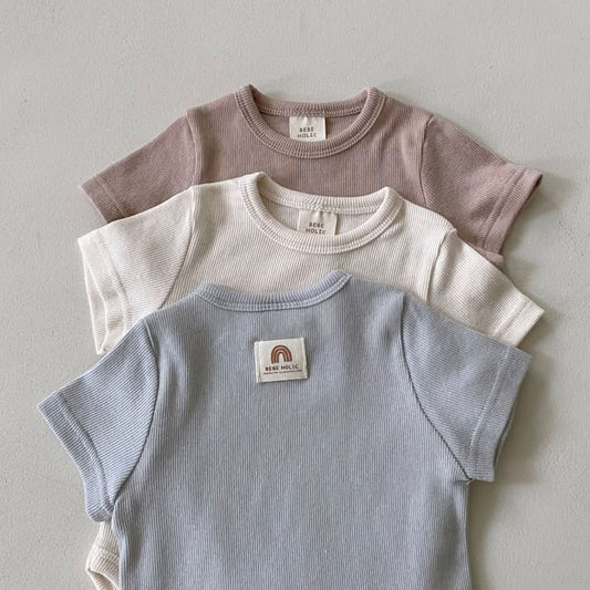 Baby BH Short Sleeve Ribbed Romper (3-18m) - 3 Colors
