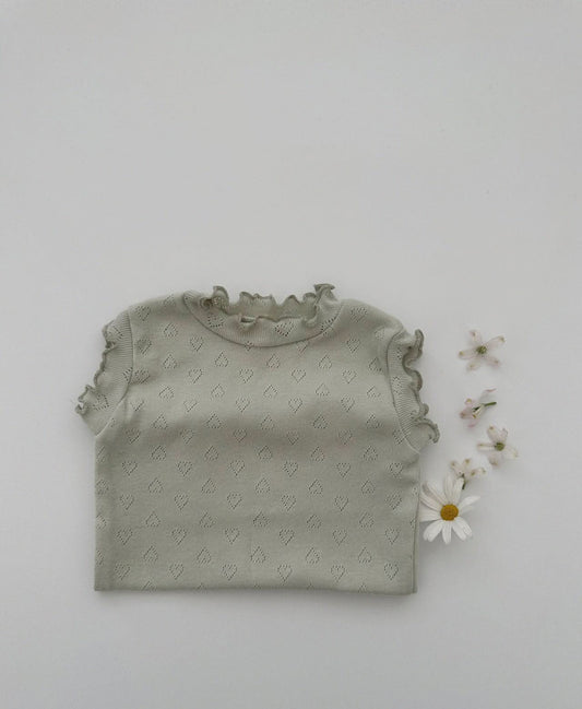 Toddler Heart Pointelle Lettuce-Edge Sleeveless Top (0-5y) - Mint