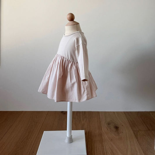 Girls Monbebe Long Sleeve Ruffle Dress (1-4y) - Beige Pink
