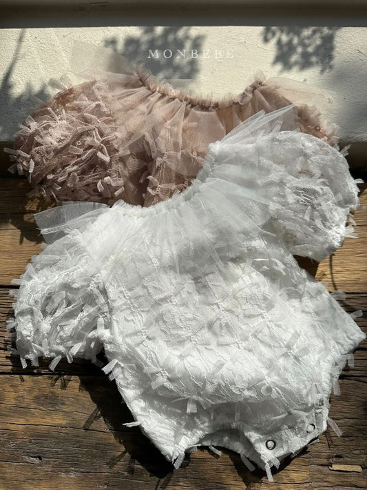 Baby Monbebe 3D Lace Tie Back Romper (0-24m) - Ivory