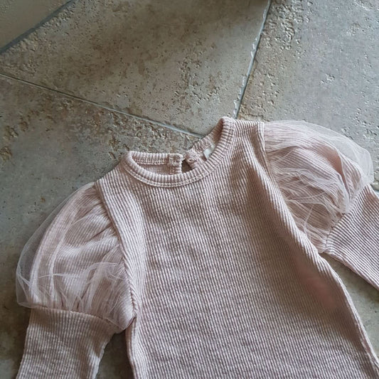 Baby Puff Sleeve Ribbed Top (6-12m) -Pink