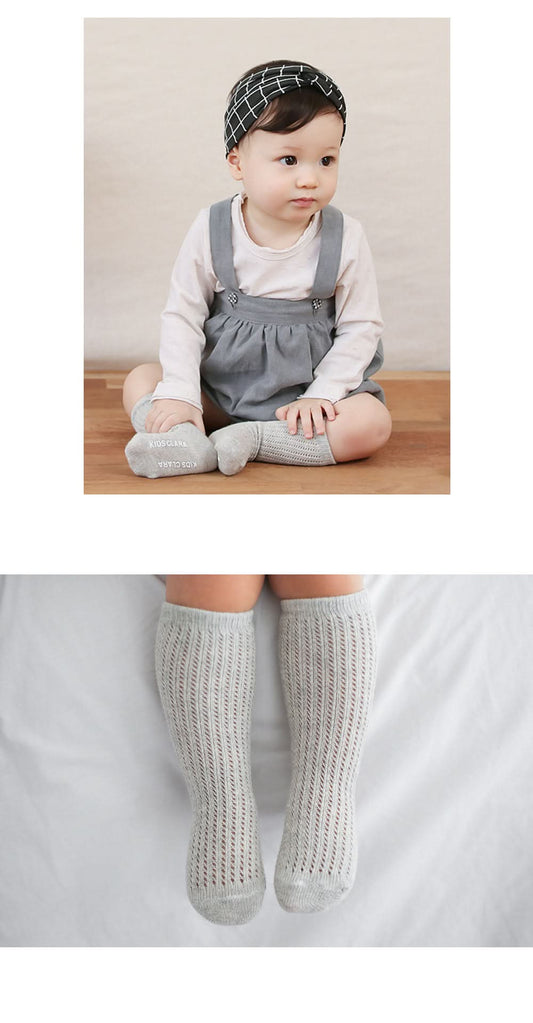 Baby Angel Pointelle Knee-High Socks (0-4y) - Grey
