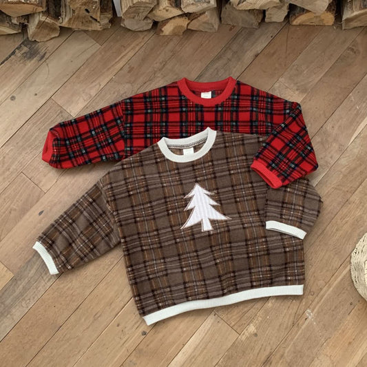 Toddler W24 Fleece Tartan Check Tree Patch Sweatshirt(5-8y)- 2 Colors