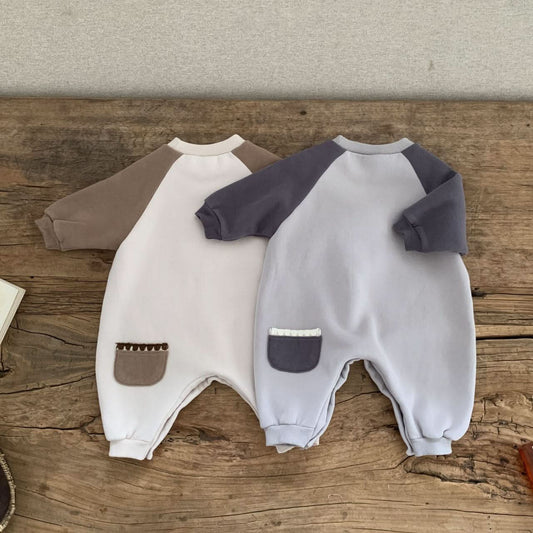 Baby BH Colorblock Sleeve Smile Patch Jumpsuit (3-18m) - 2 Colors