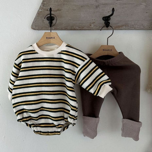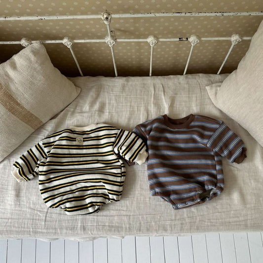 Baby Fleece Lined Stripe Sweatshirt Romper (0-24m) - 2 Colors