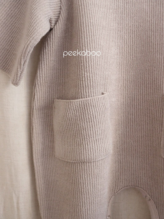 Baby Rib Knit Double Pocket Jumpsuit (3-18m)- Beige