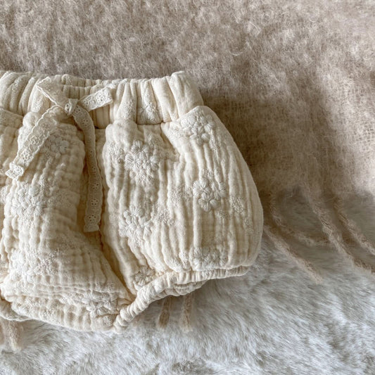 Baby BH Floral Embroidery Warm Bloomer Shorts (3-18m) - Cream