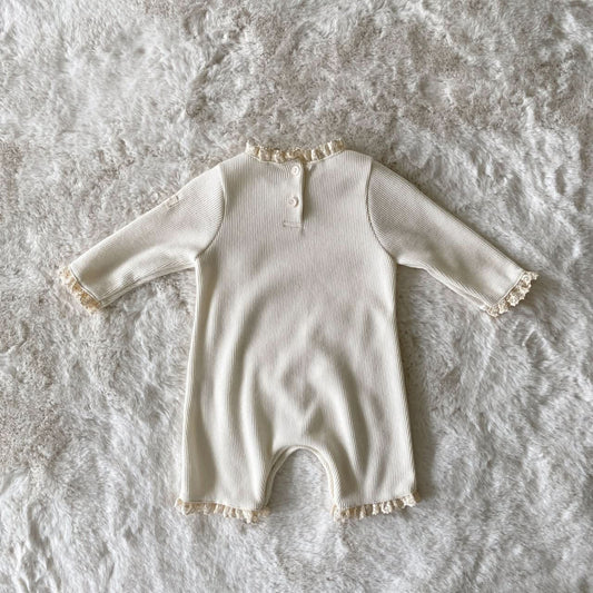 Baby BH Lace Trim Velour Bodysuit (3-18m) - Cream