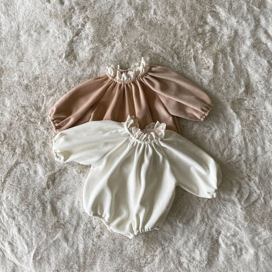 Baby BH Lace Neck Trim Velour Bubble Romper (3-18m) - 2 Colors