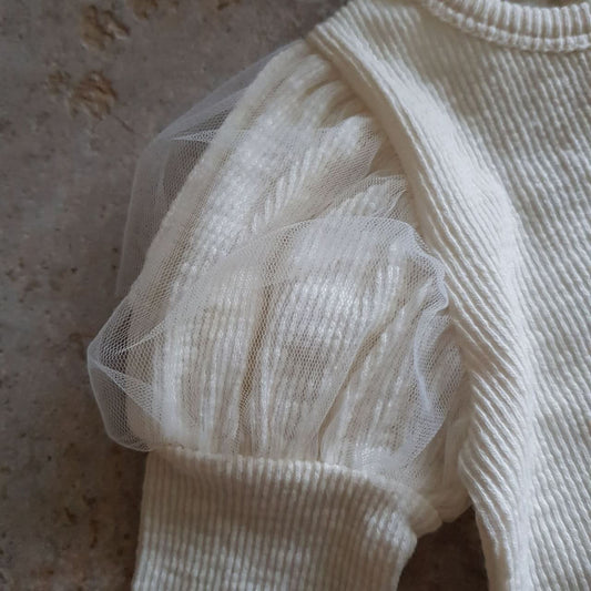 Baby Puff Sleeve Ribbed Top (6-12m) - Ivory