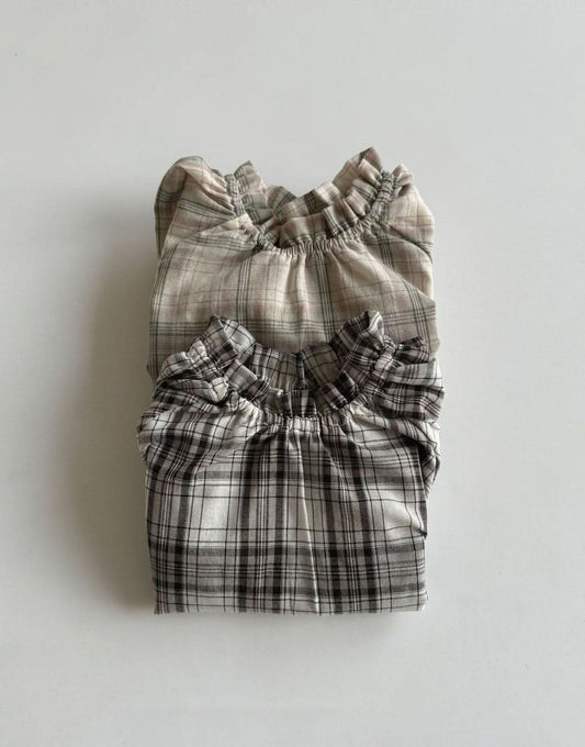 Baby Toddler Ruffle Neck Plaid Blouse Top (3m-5y) - 2 Colors