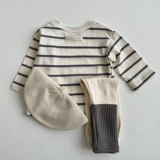 Kids Long Sleeve Stripe Top (3m-5y) - Charcoal