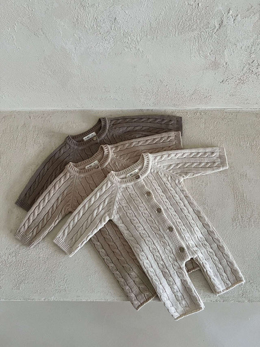 Baby Cable Knit Sweater Long Sleeve Jumpsuit (0-24m) - 3 Colors