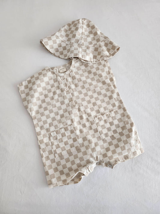 Baby Checkered Sleeveless Jumpsuit and Bucket Hat Set (13-36m)