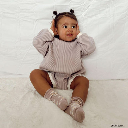Baby Ribbed Sweater Knit Romper (0-18m)-Beige