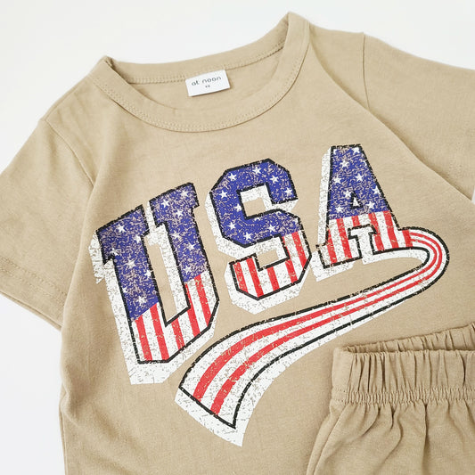Toddler USA T-Shirt and Shorts Set (1-5y) - Beige