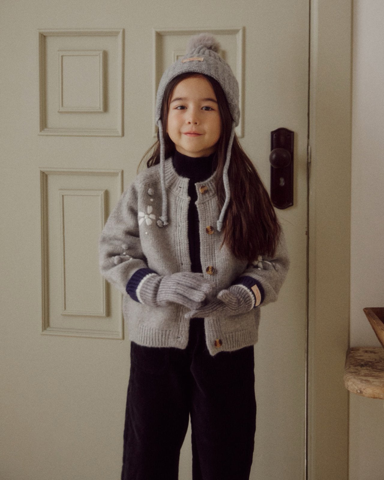 Kids W25 Floral Jacquard Cadigan(3-8y) - Gray
