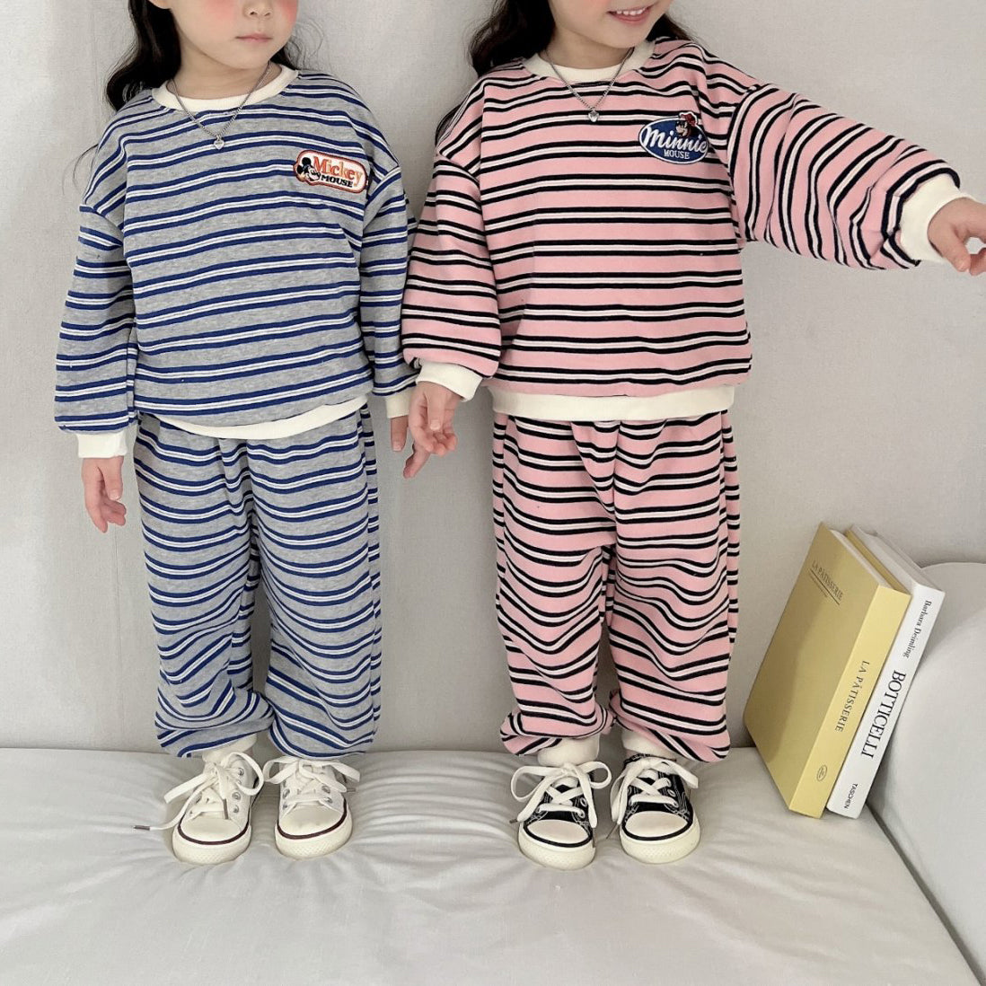 - Stripe sweatshirt and jogger pants set, Mickey and Minnie pat