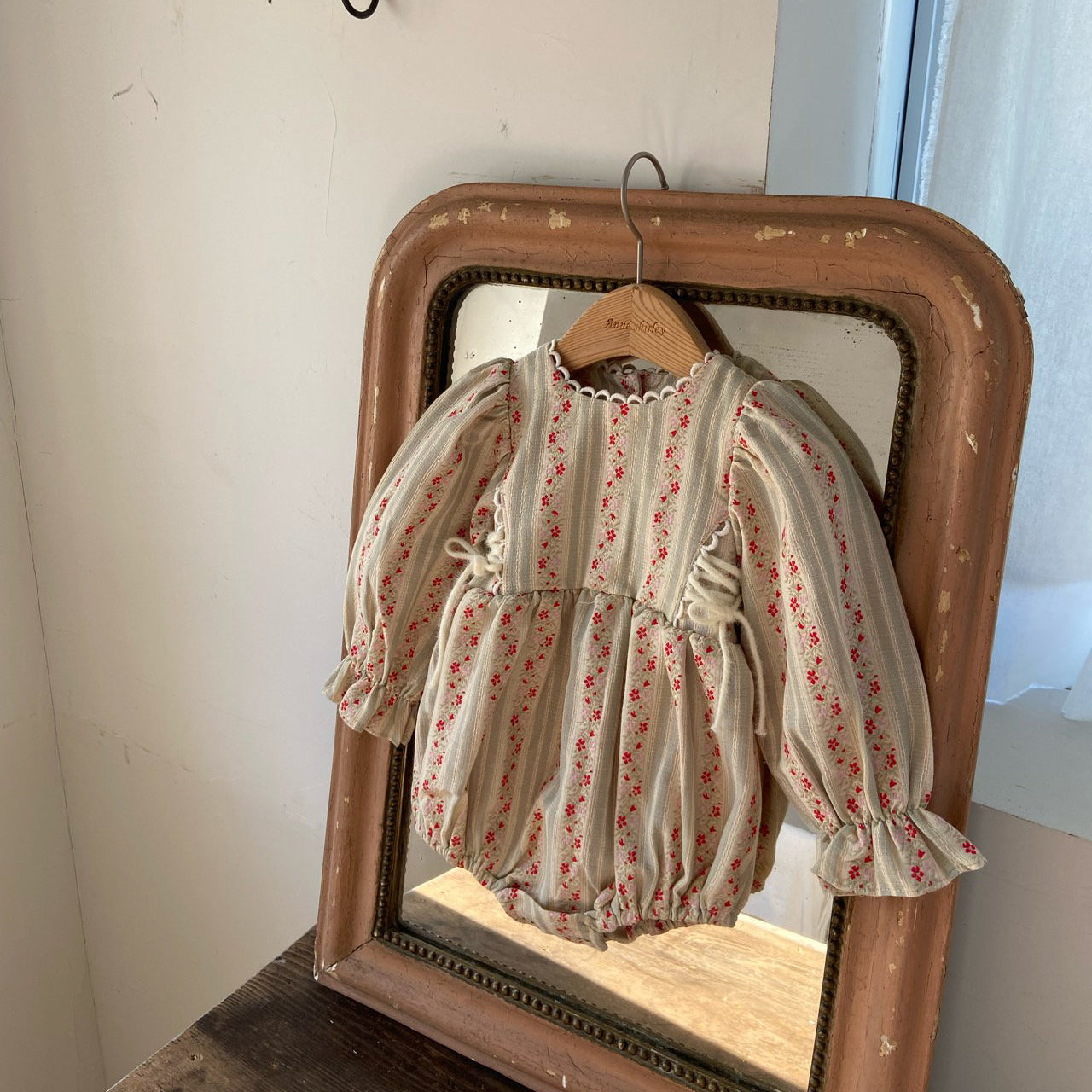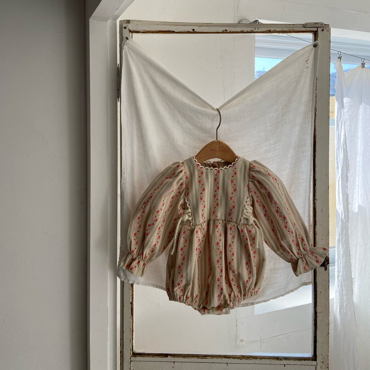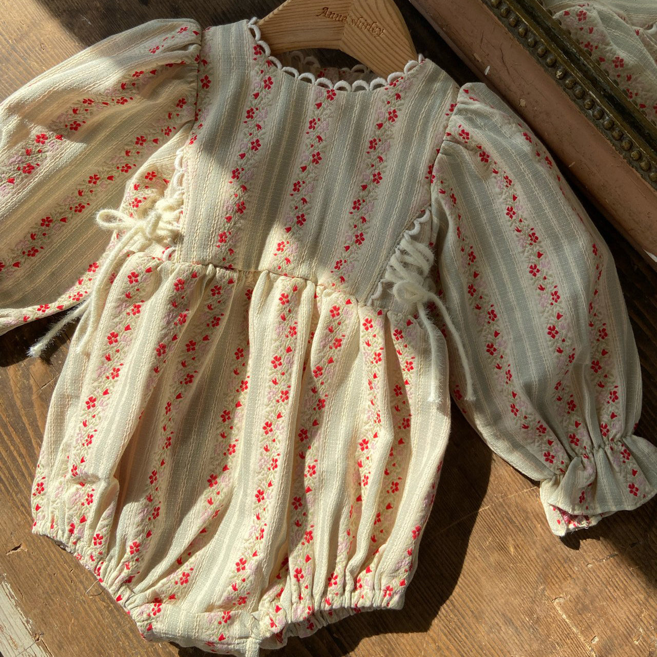 Baby Ann SP26 Floral Puff Long Sleeve Bubble Romper (3-18m) - Red Floral